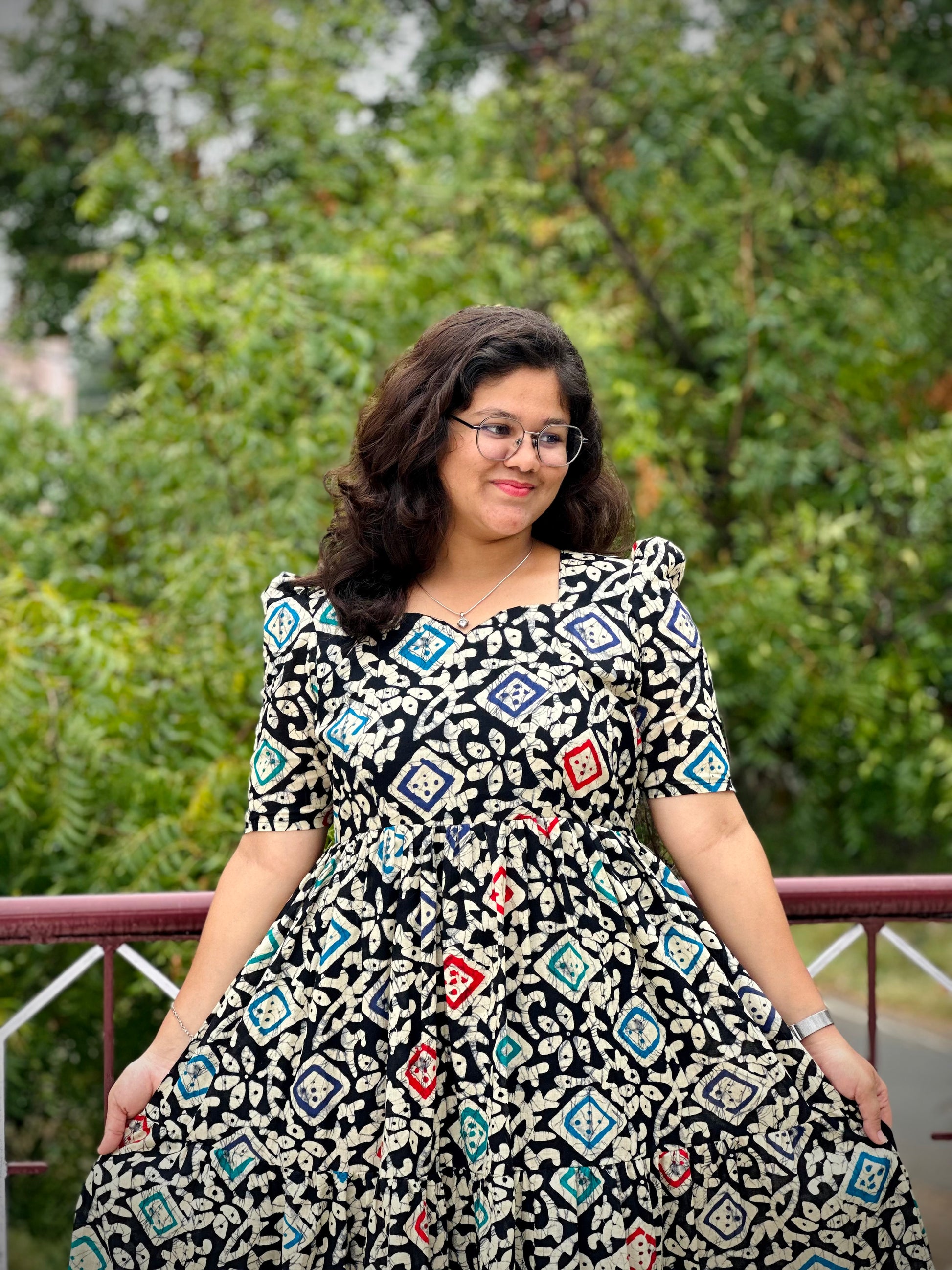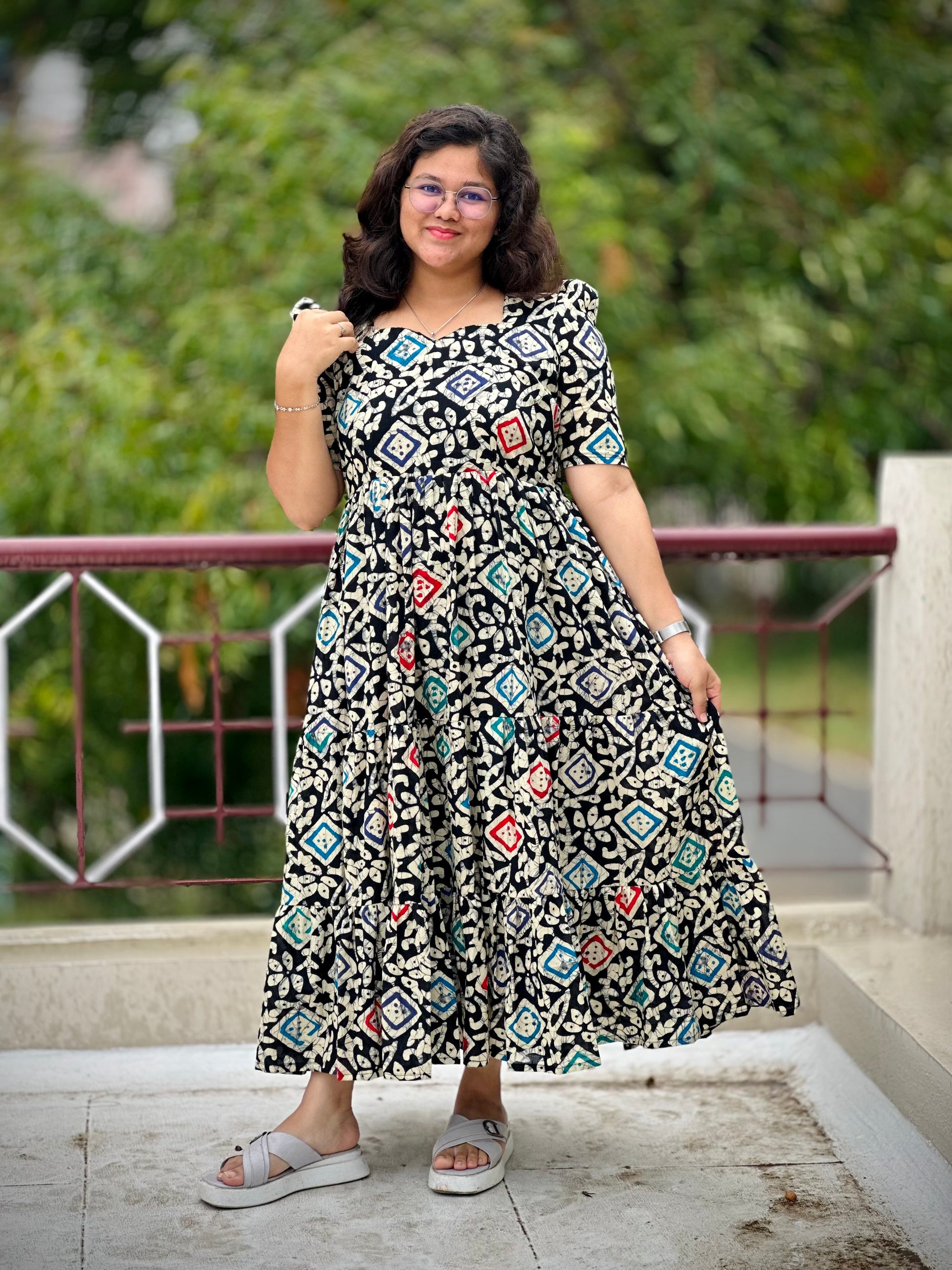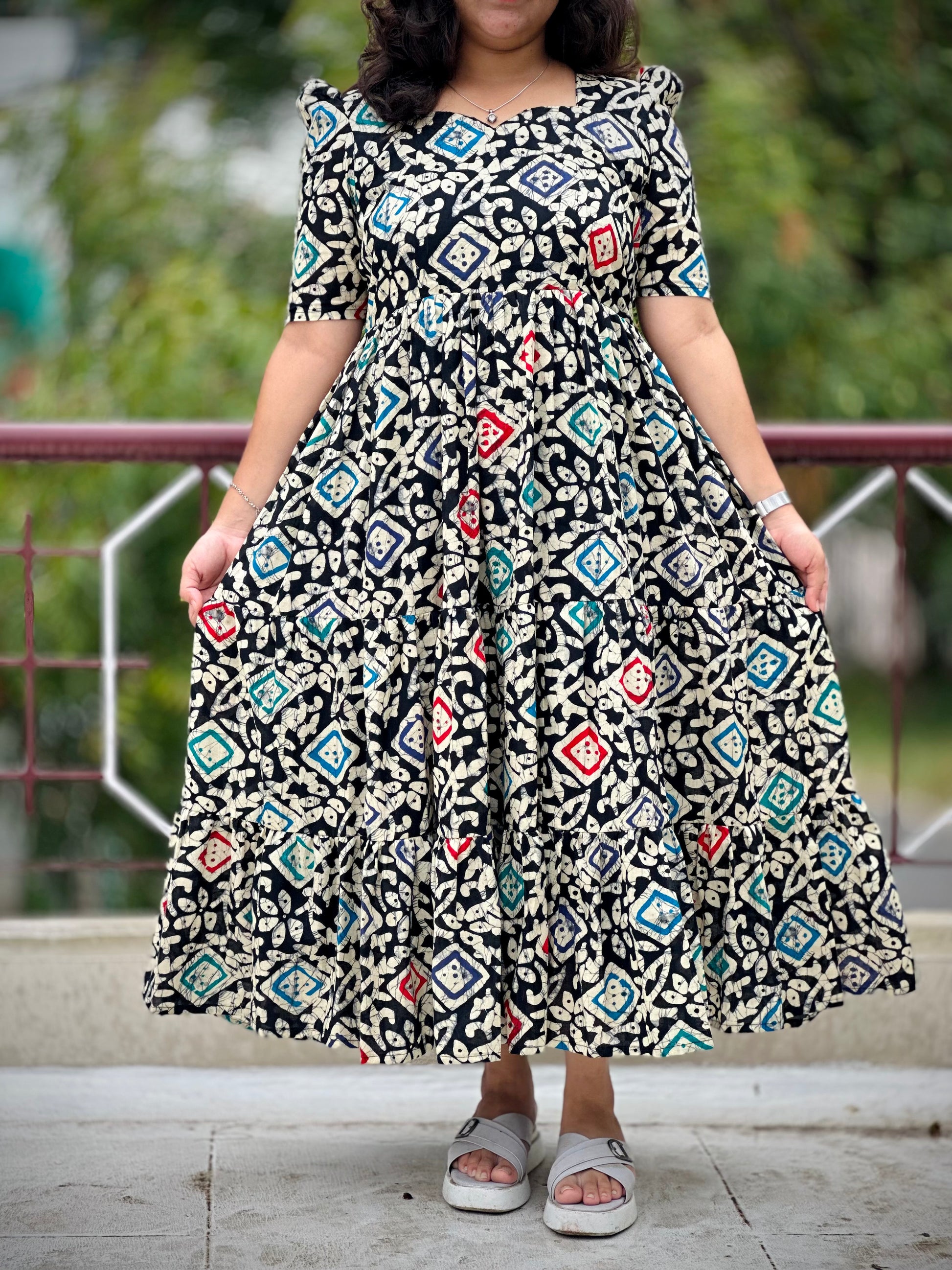 Style: 3 layer Maxi /Sweeat heart neck / elbow puff sleeve