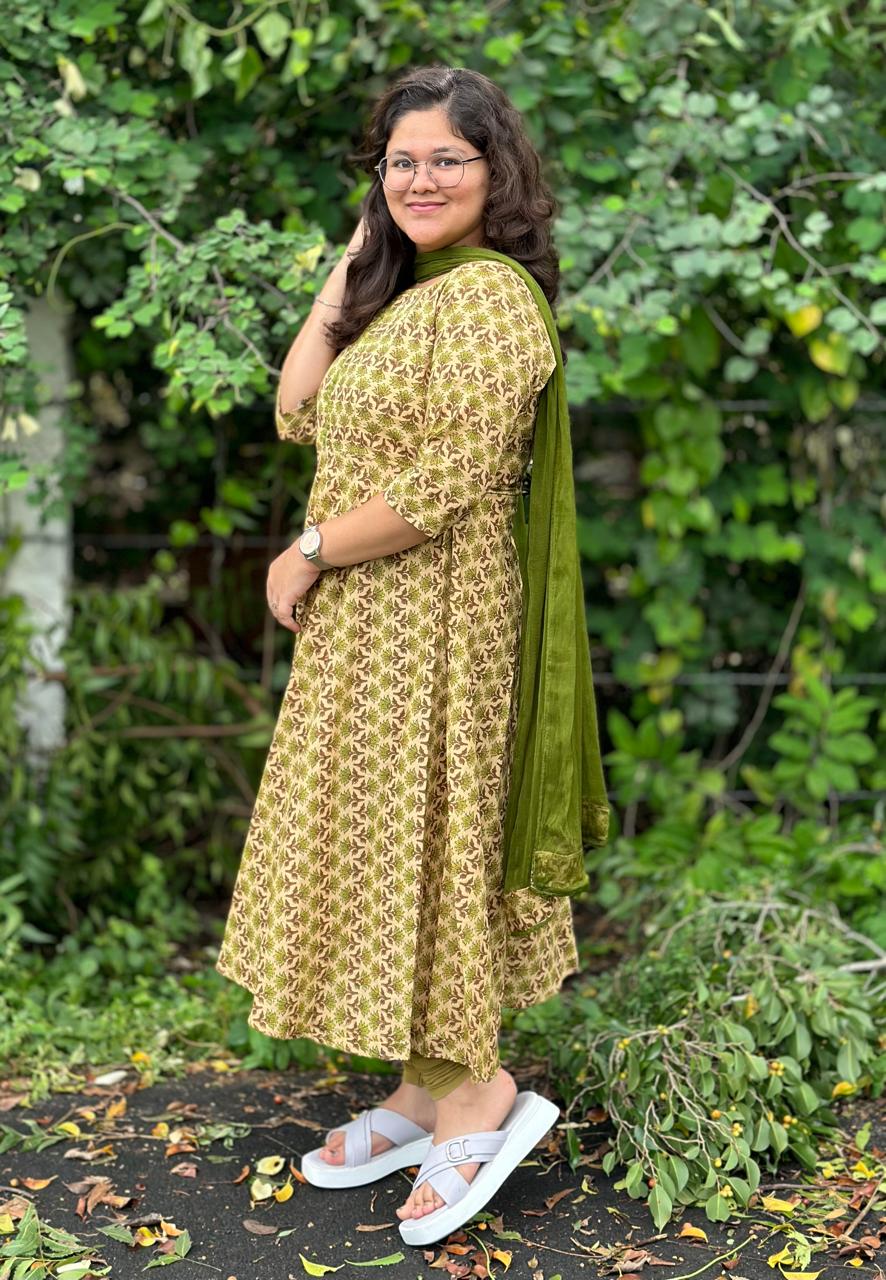 Style: Circular anarkali Kurthi / Boat neck/ 3/4th sleeve
