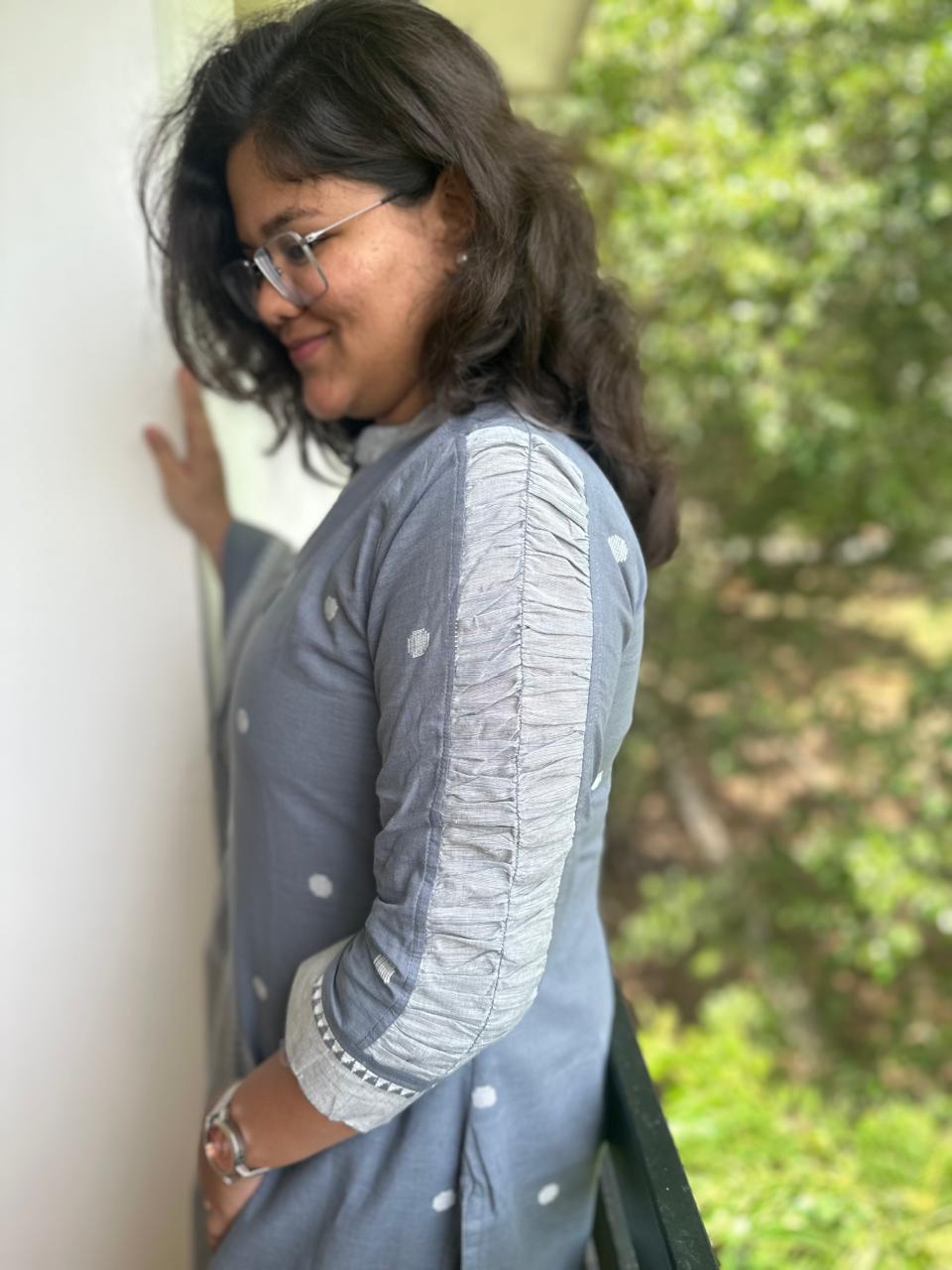 Style: Straight kurthi /Straight pant / Chinese collor neck / 3/4th ruffle sleeves
