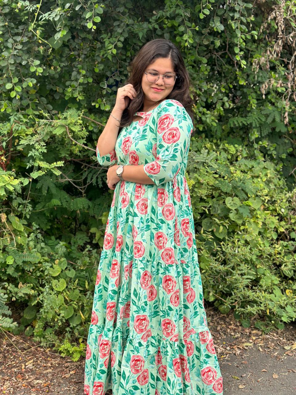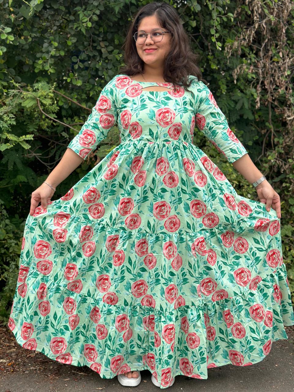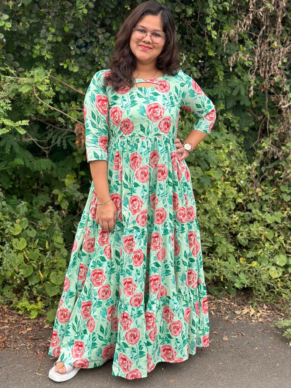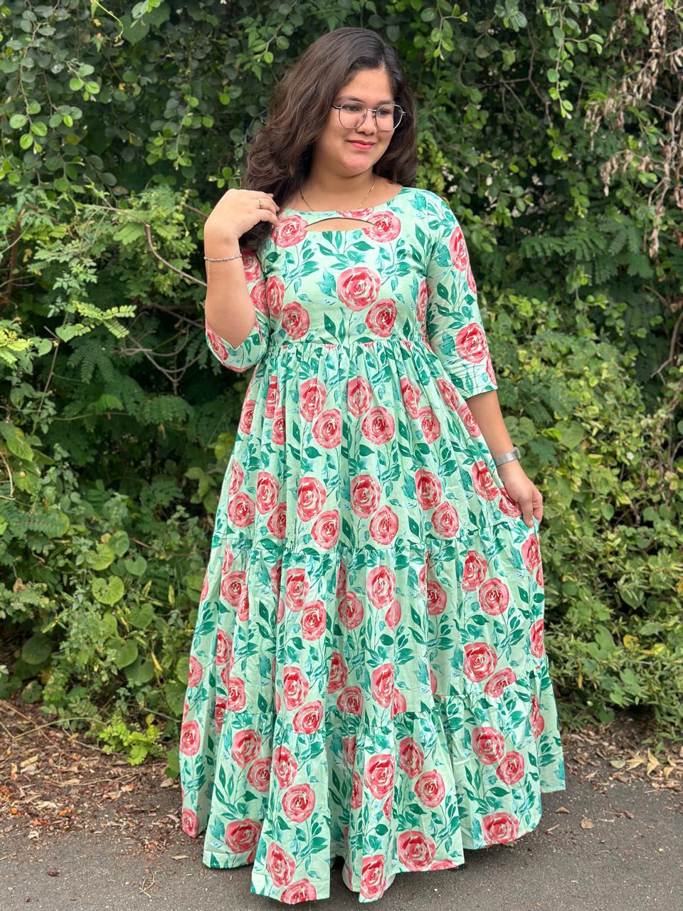 Style: 3-layer Floor length frock / Boat neck with eye hole / 3/4th sleeve