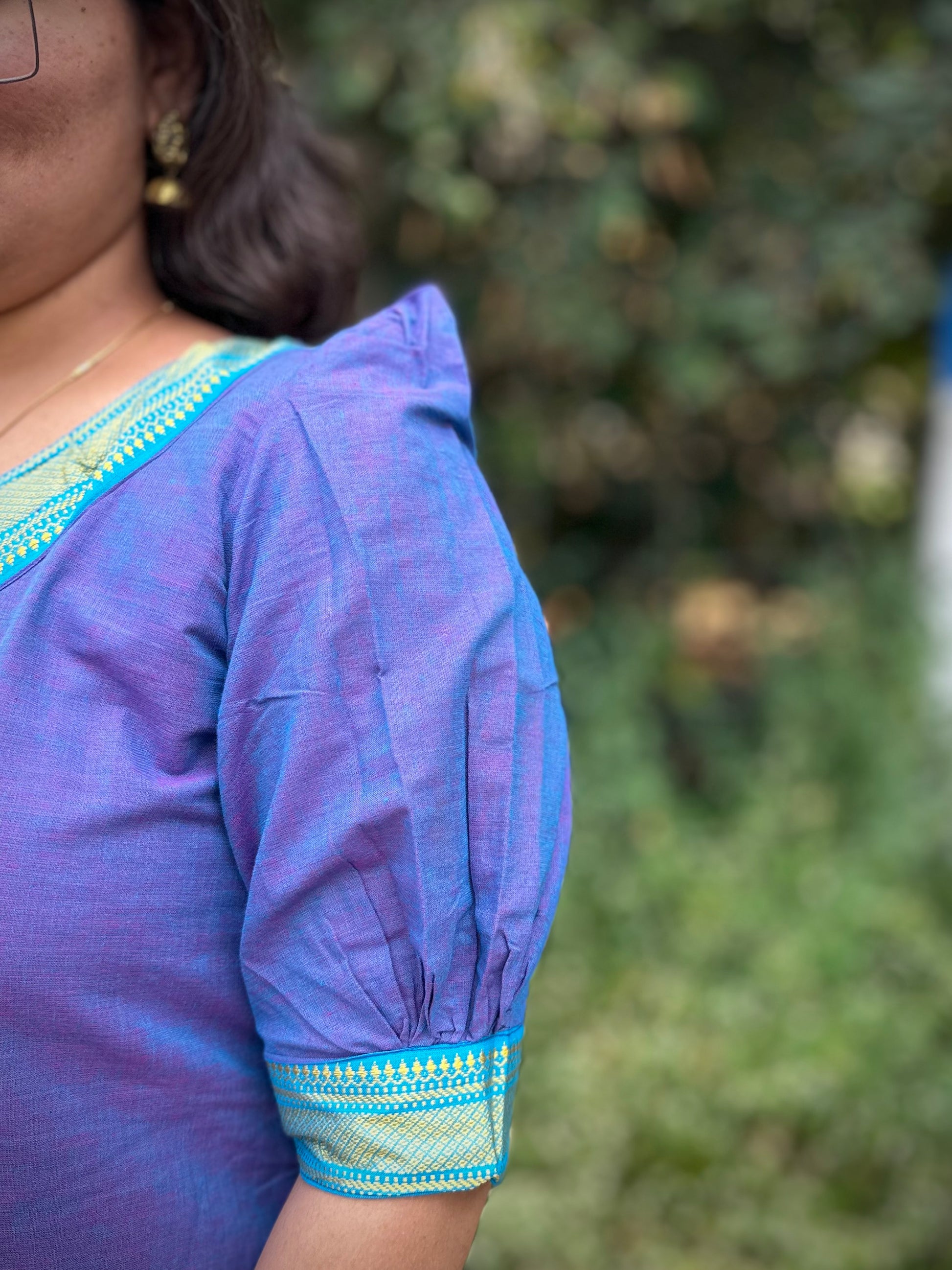 Style: Straight kurthi /Straight pant /V neck / elbow puff sleeves