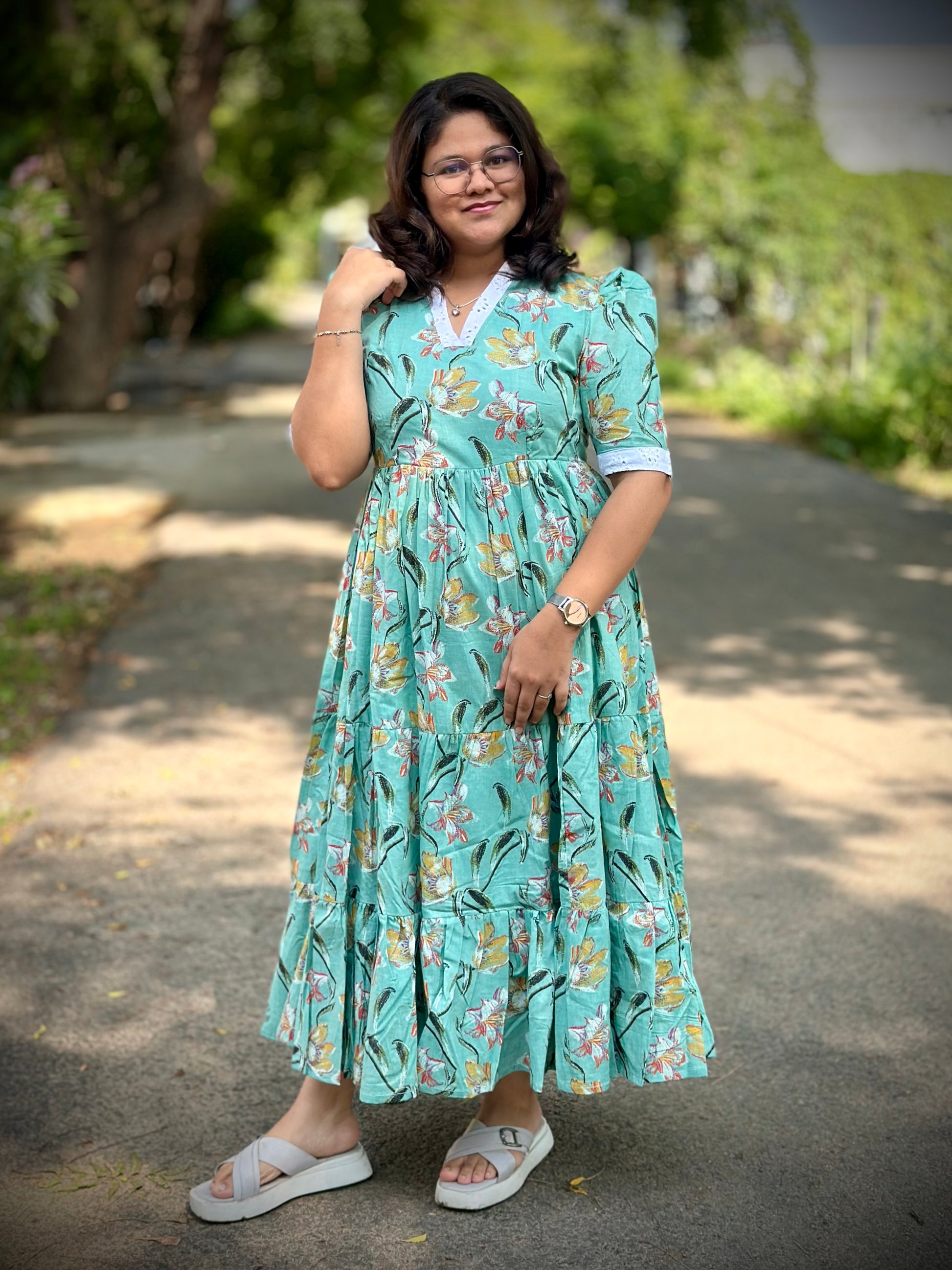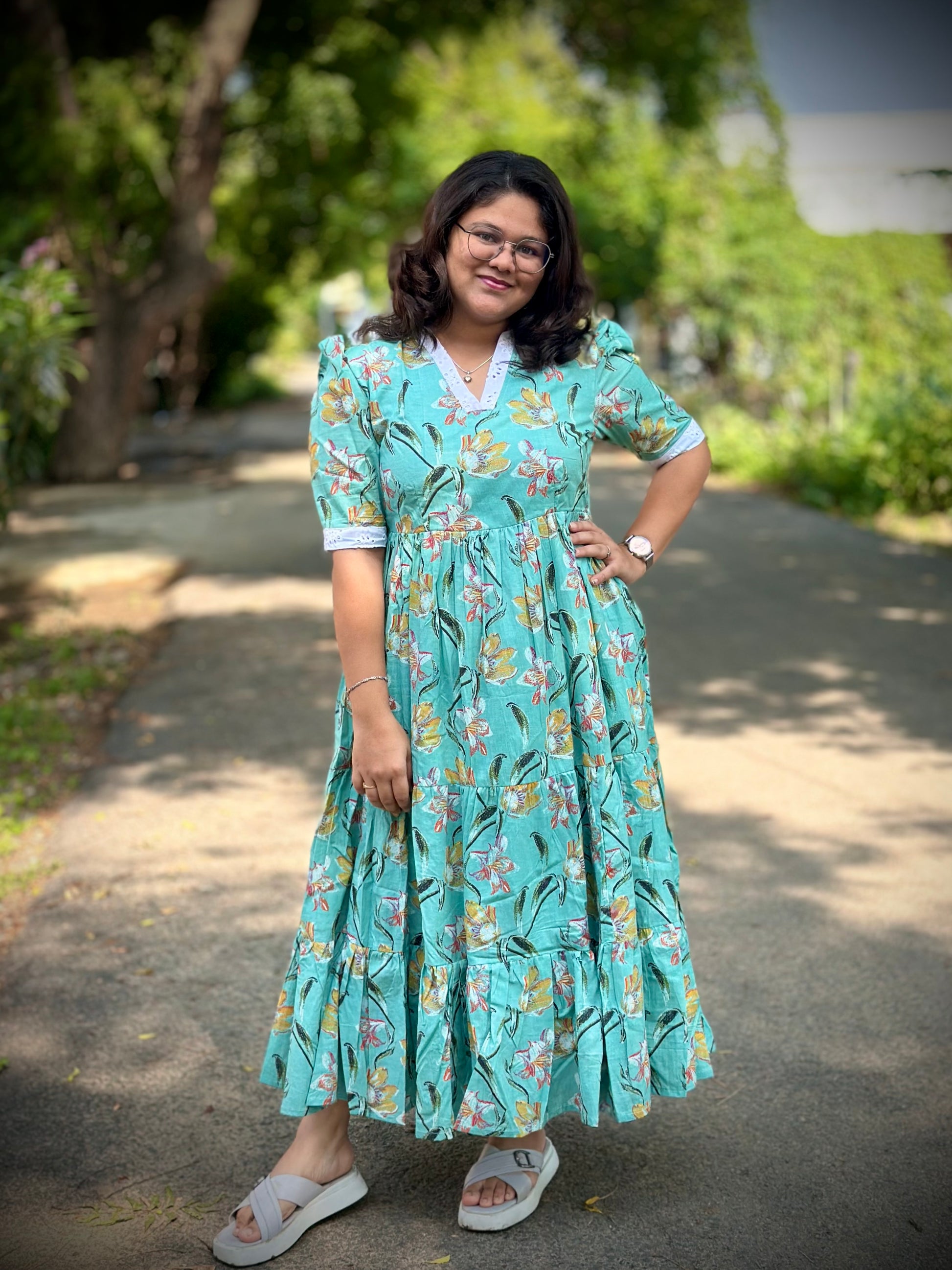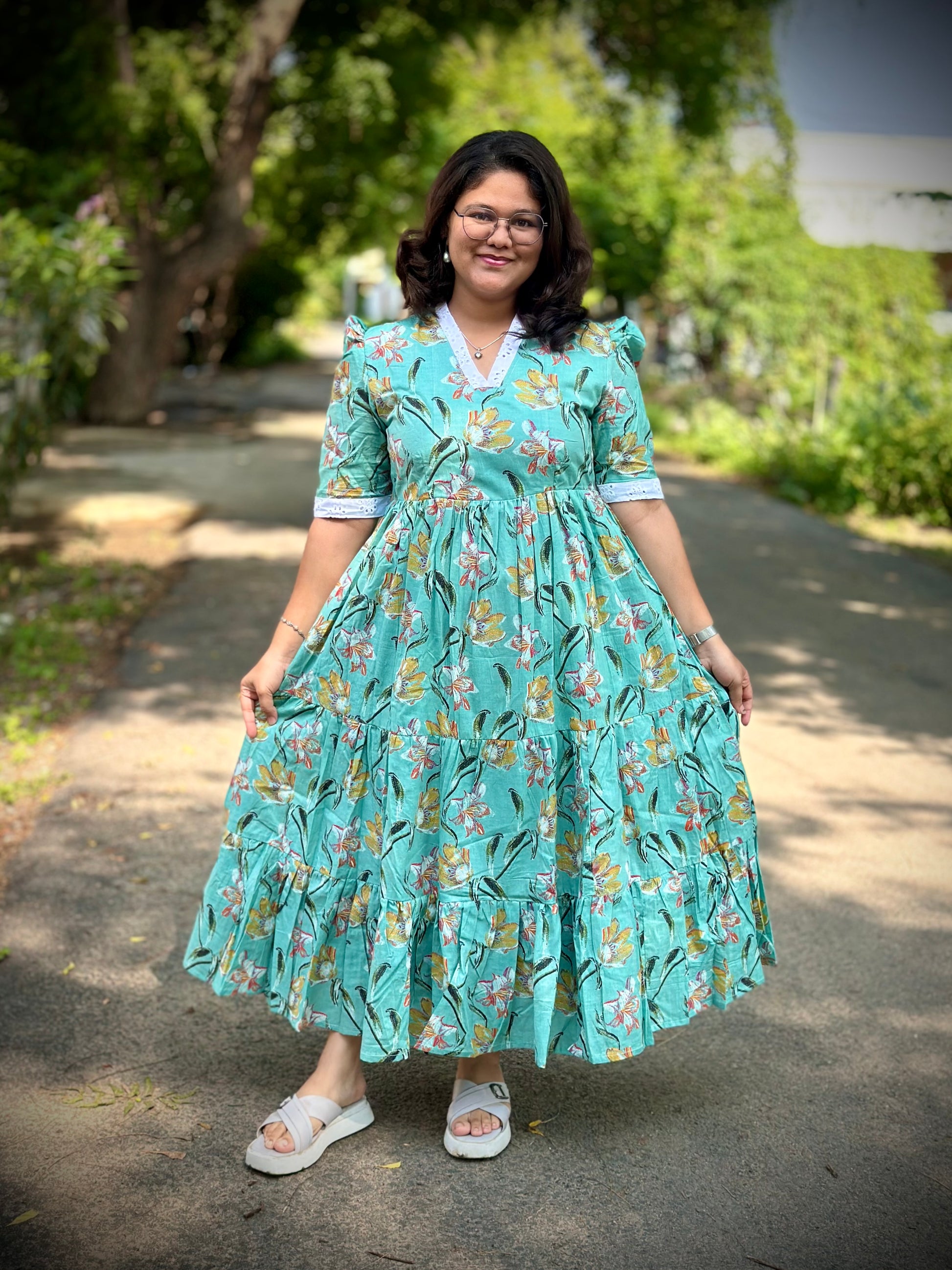 Style: 3 layer Maxi / V collor neck / elbow puff sleeve