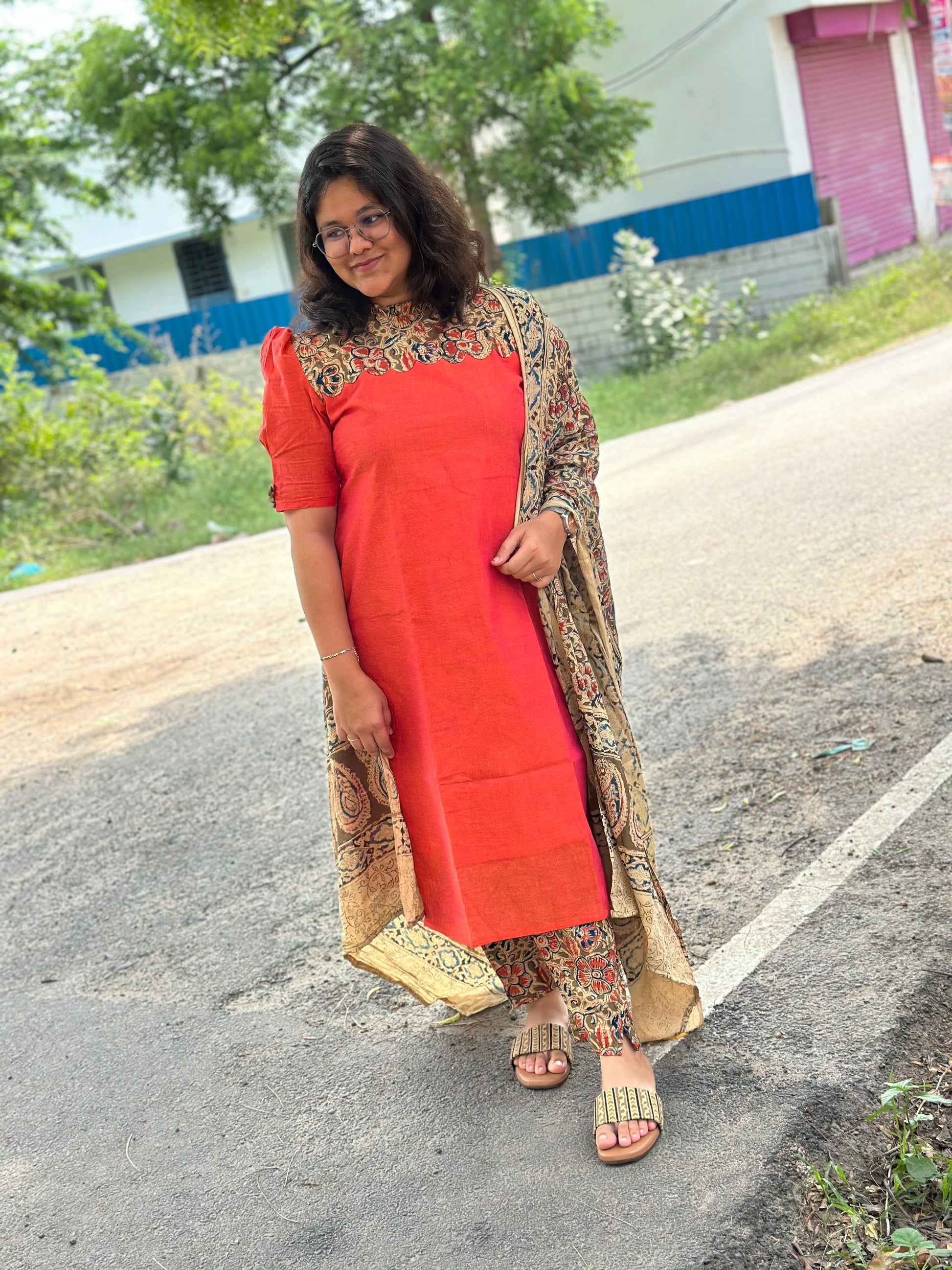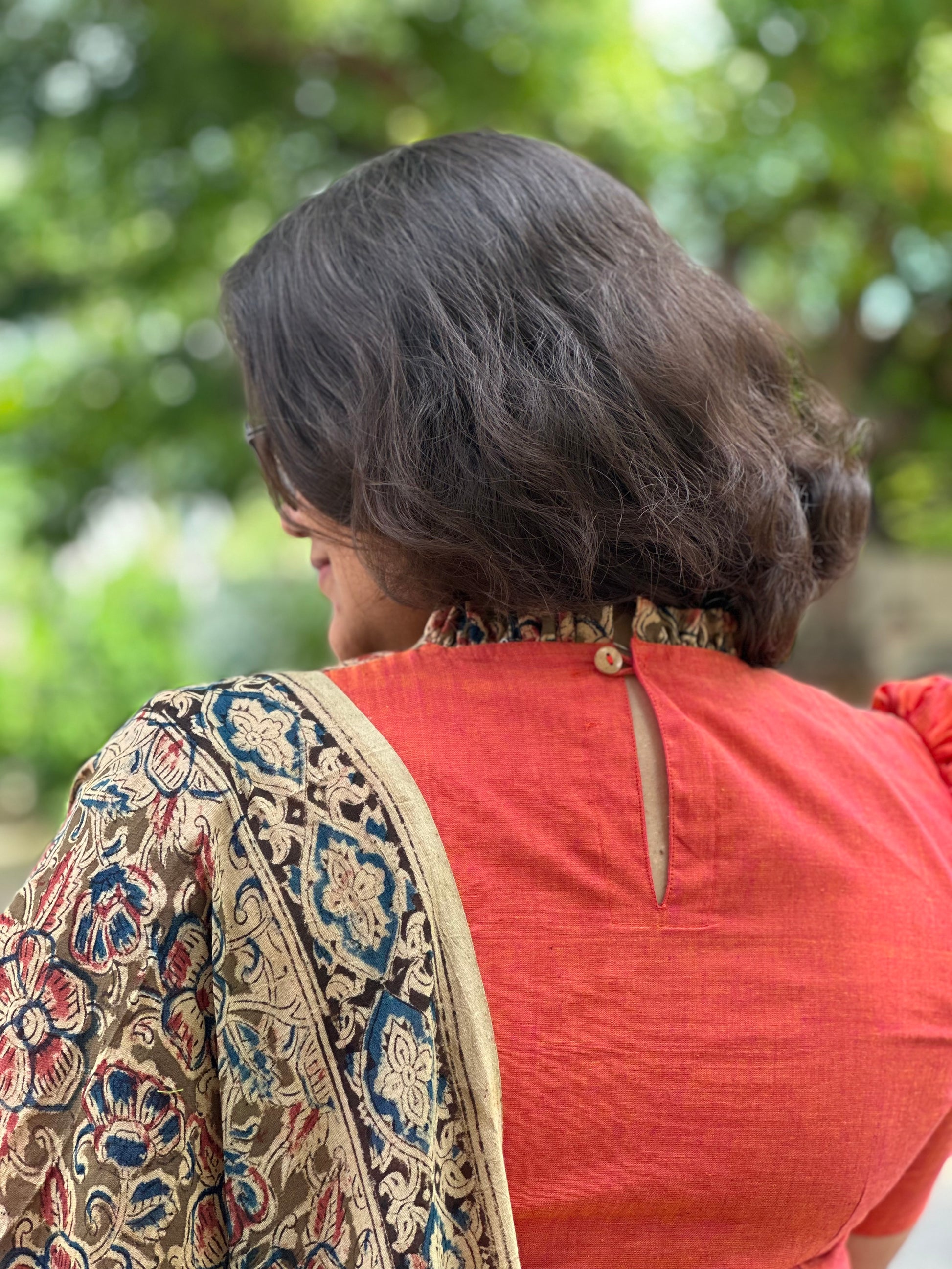 Style: Straight kurthi /Straight pant /Close ruffle neck / elbow puff sleeves