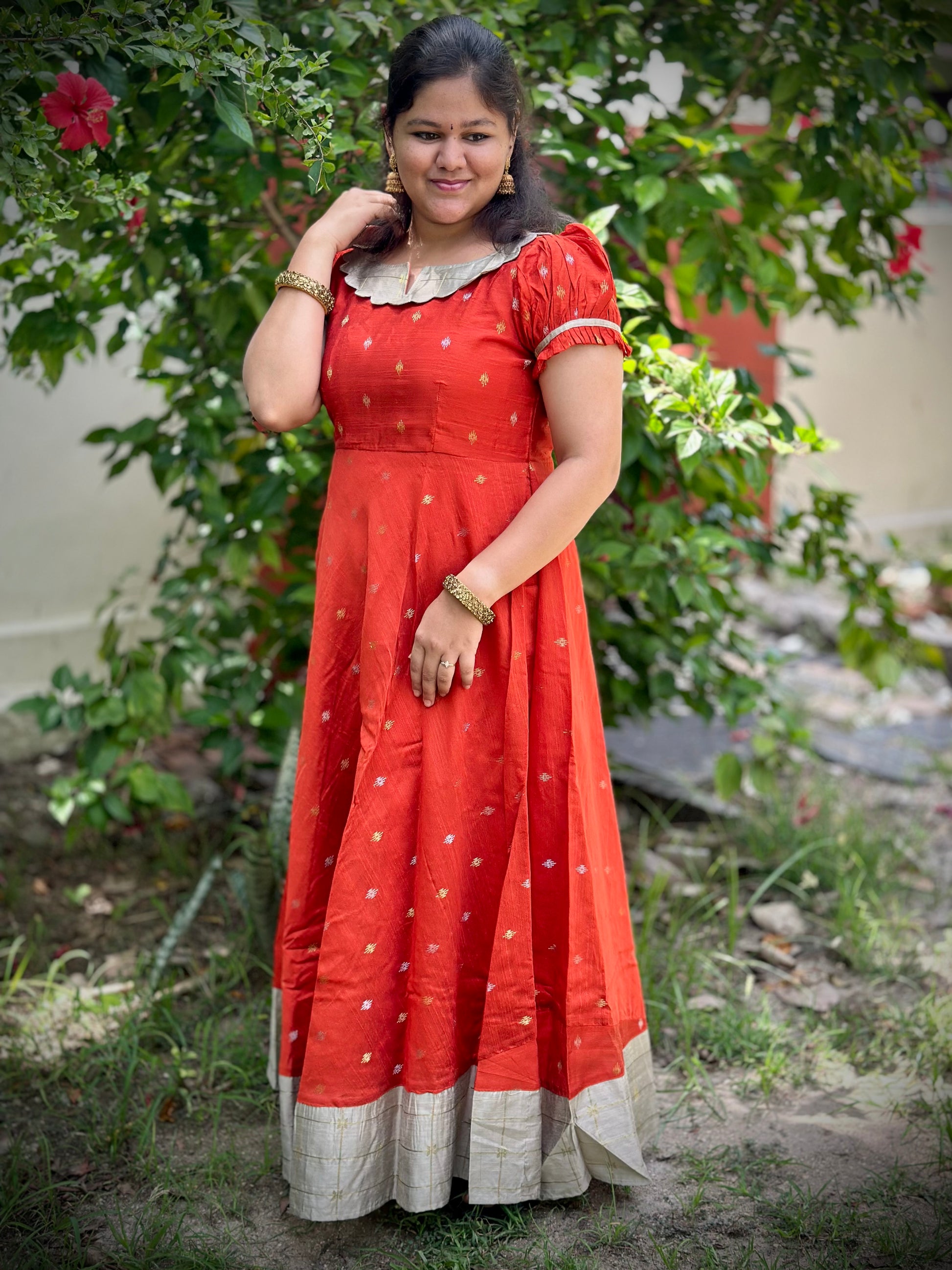 Style: Circular Floor length frock / Short puff sleeve