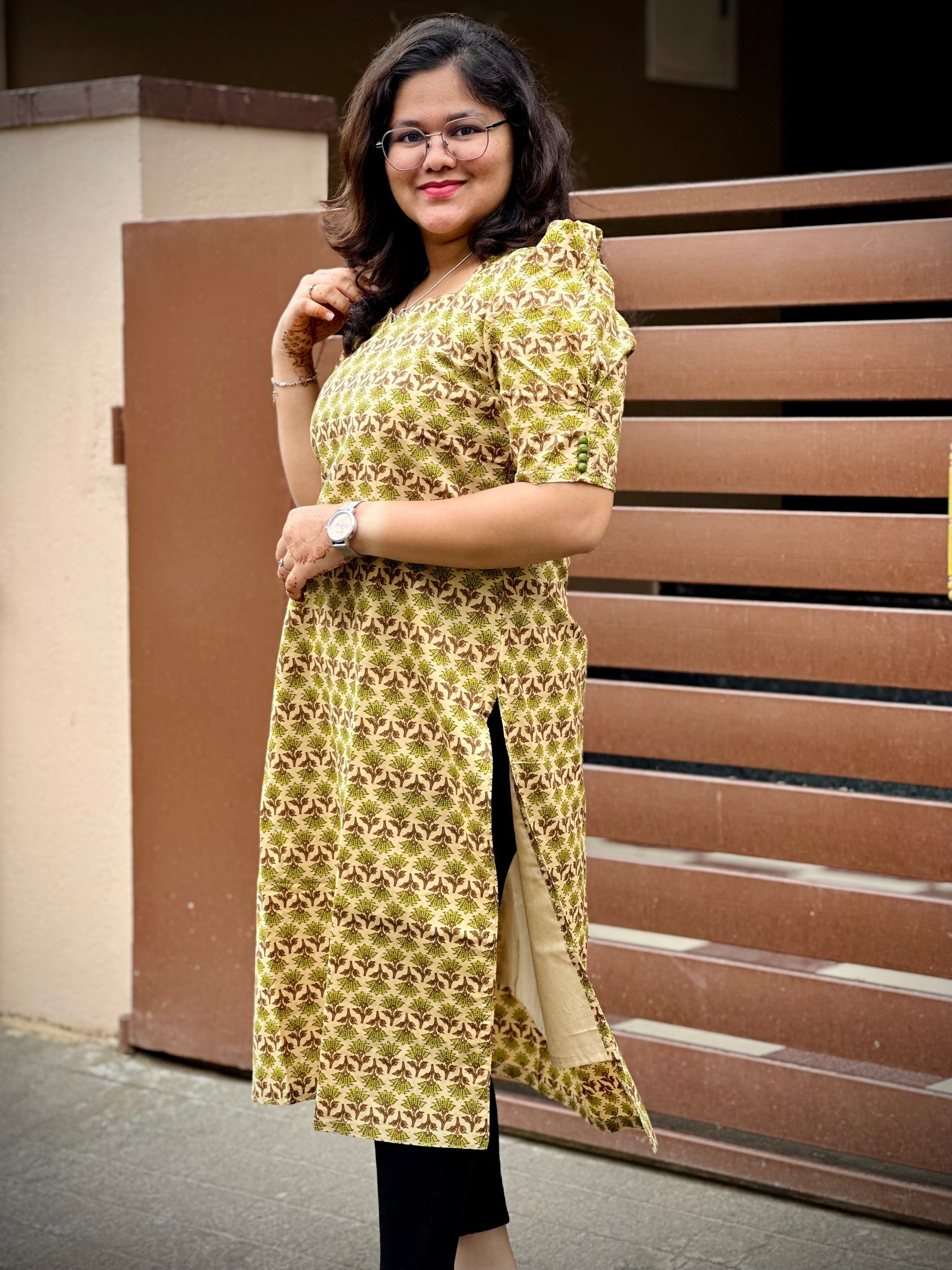 Style: Straight Kurthi / Sweetheart neck / Elbow puff sleeve