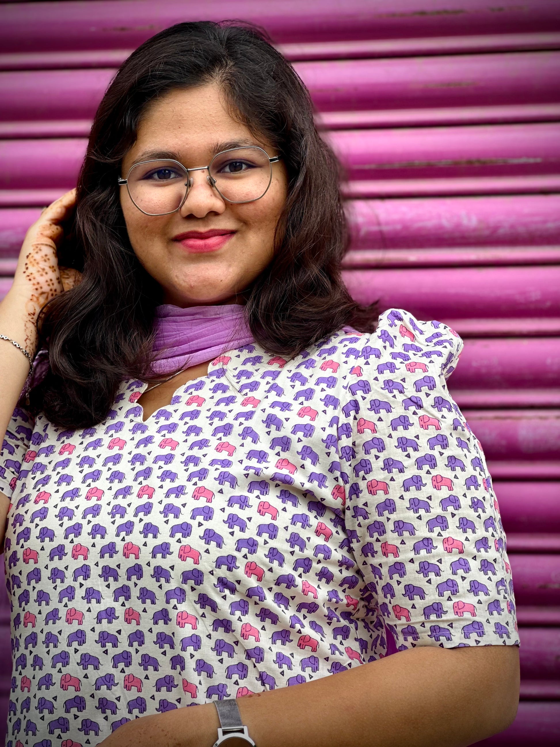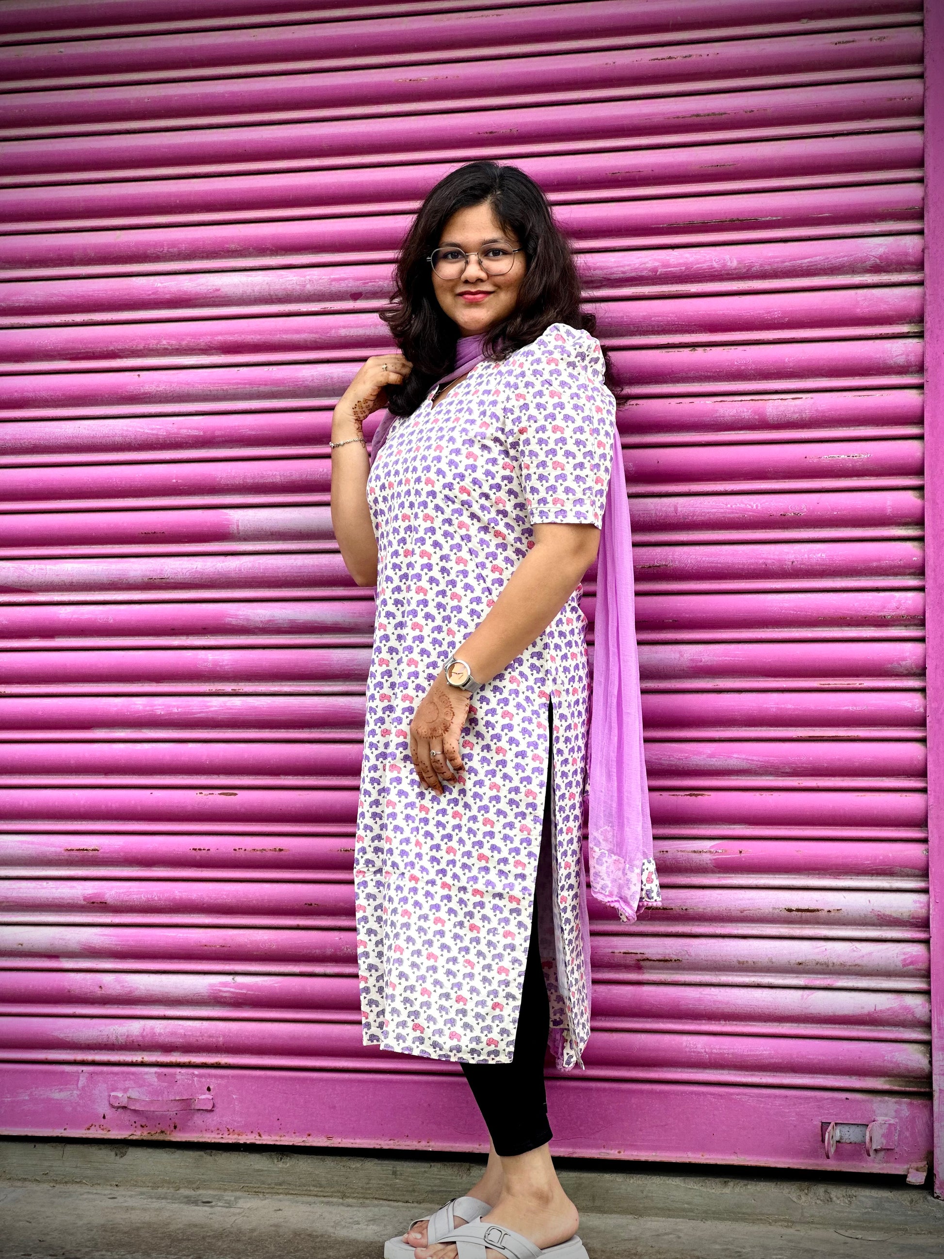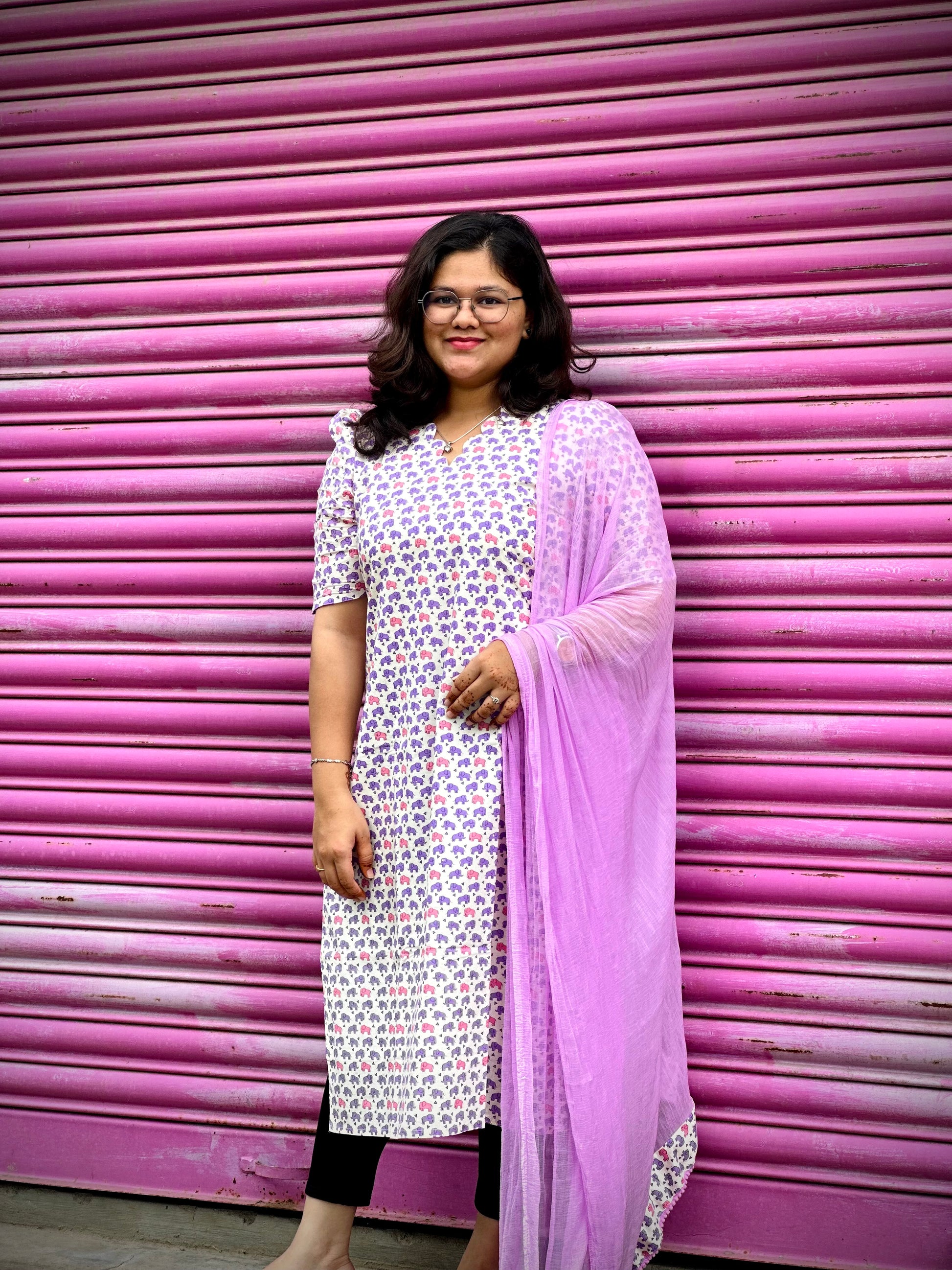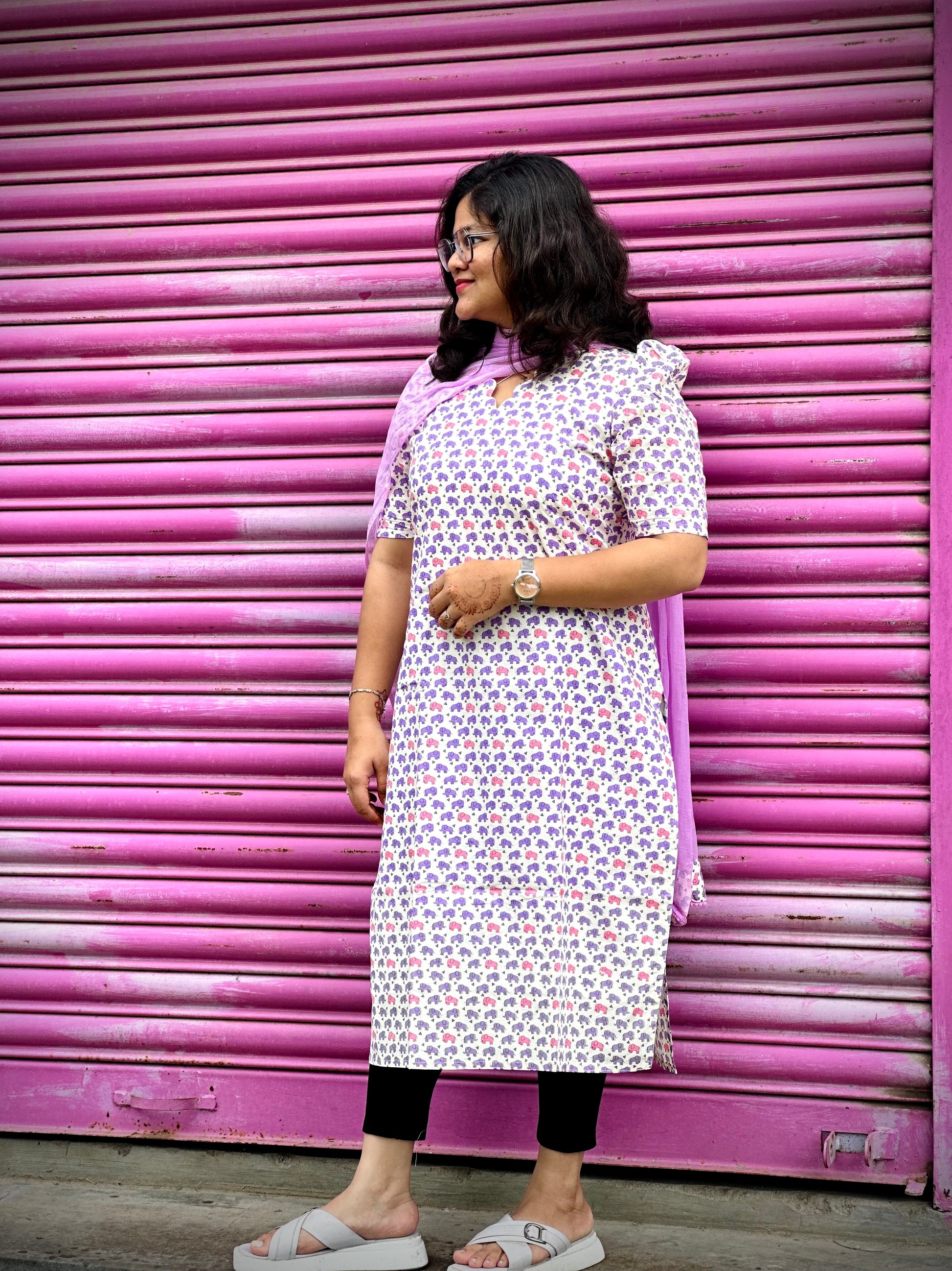 Style: Straight Kurthi / V scallop neck / Elbow puff sleeve