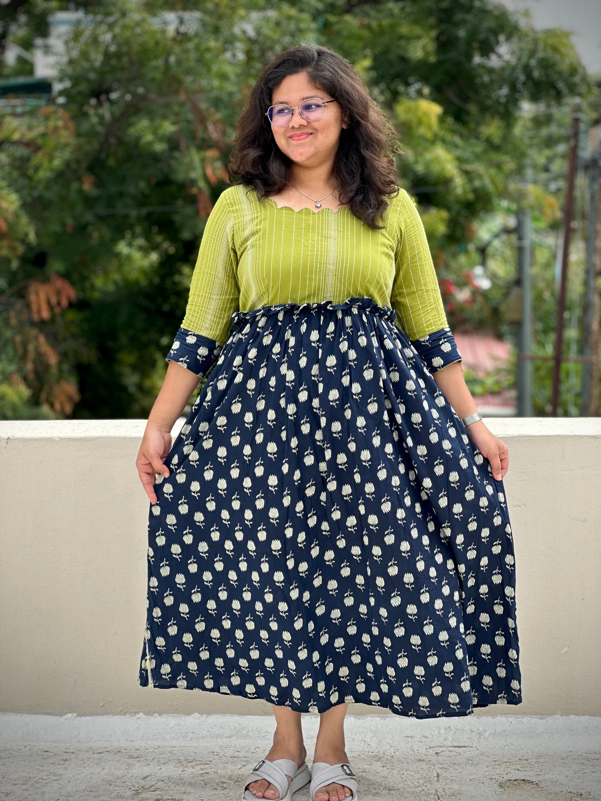 Style: 1 layer Maxi /Scallop neck / 3/4th sleeve