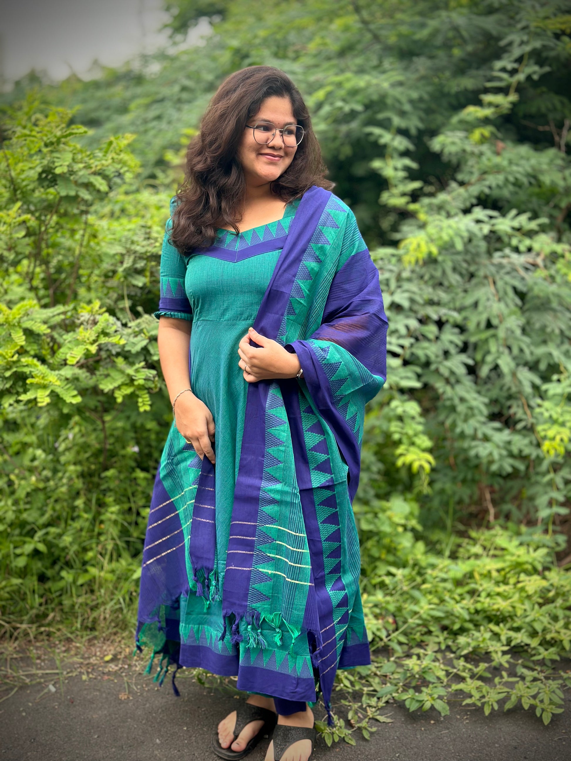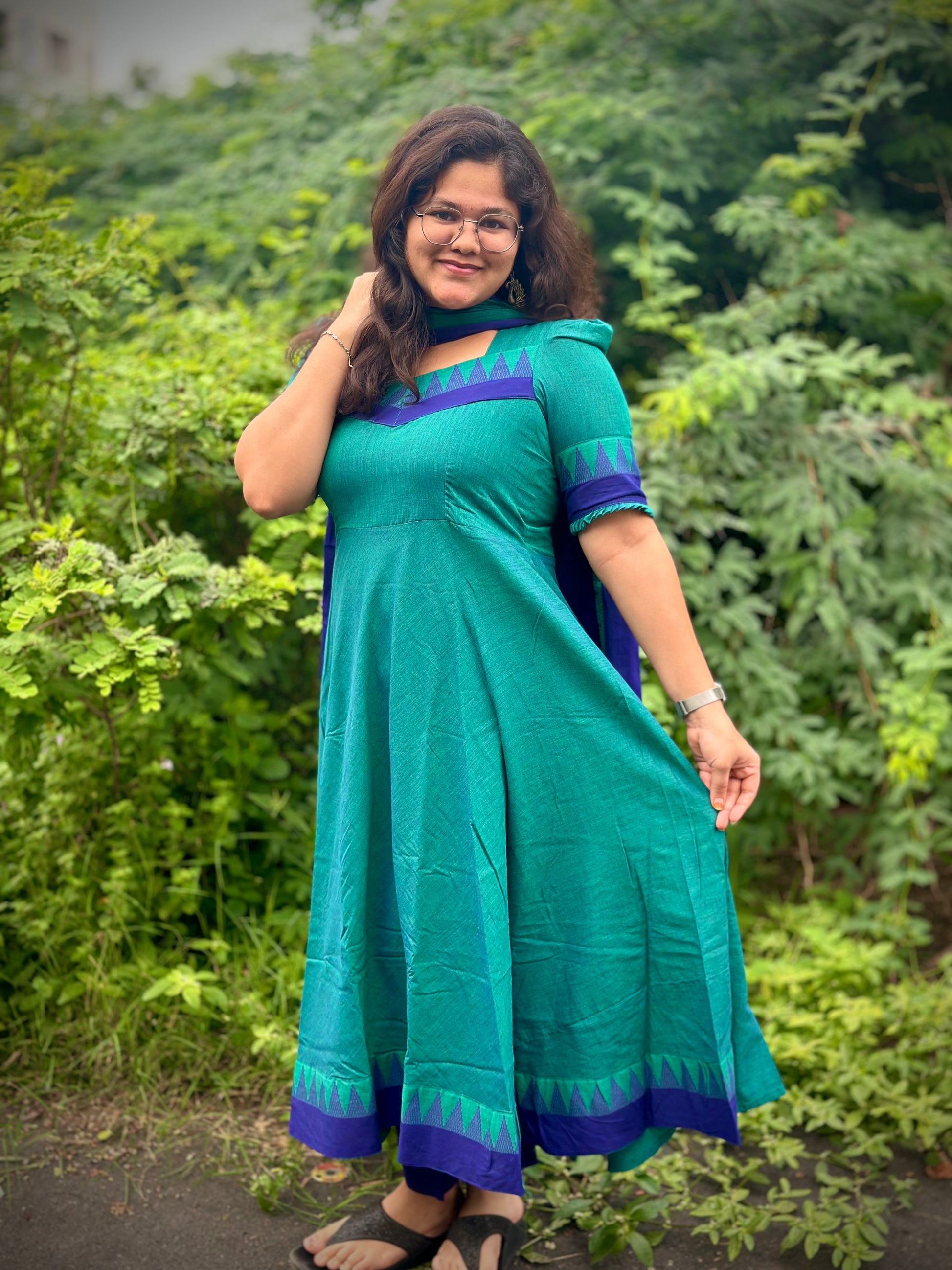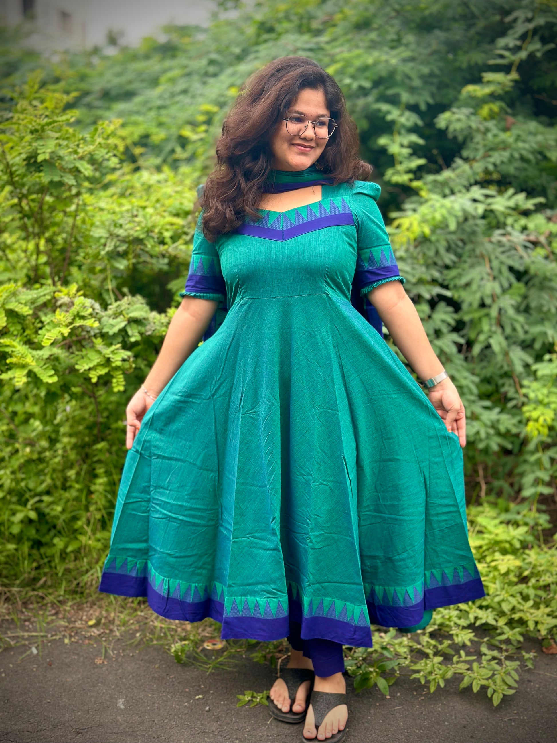 Style: Circular anarkali Kurthi / Star neck/ Elbow puff sleeve / Comes with cotton duppata as in picture