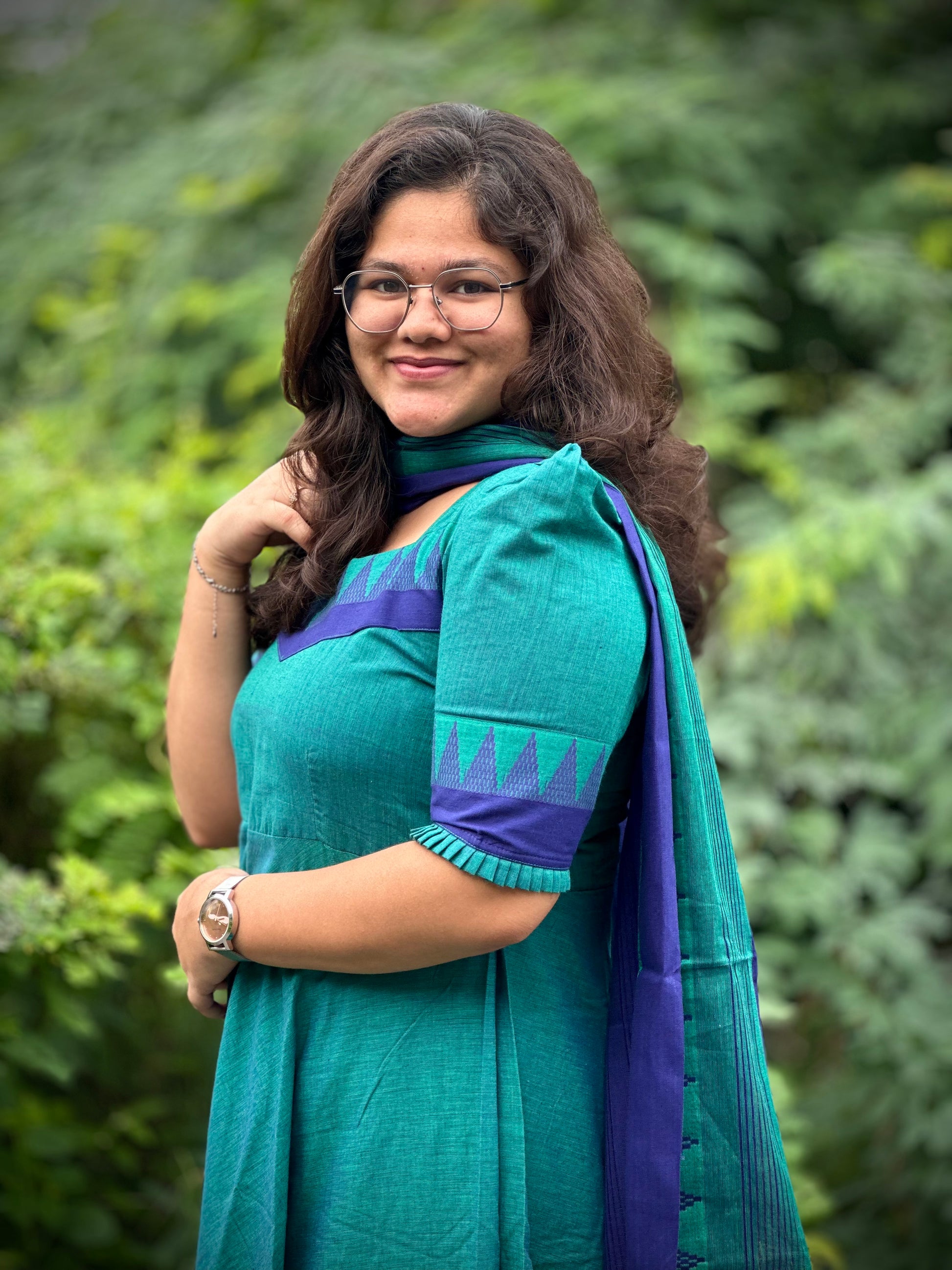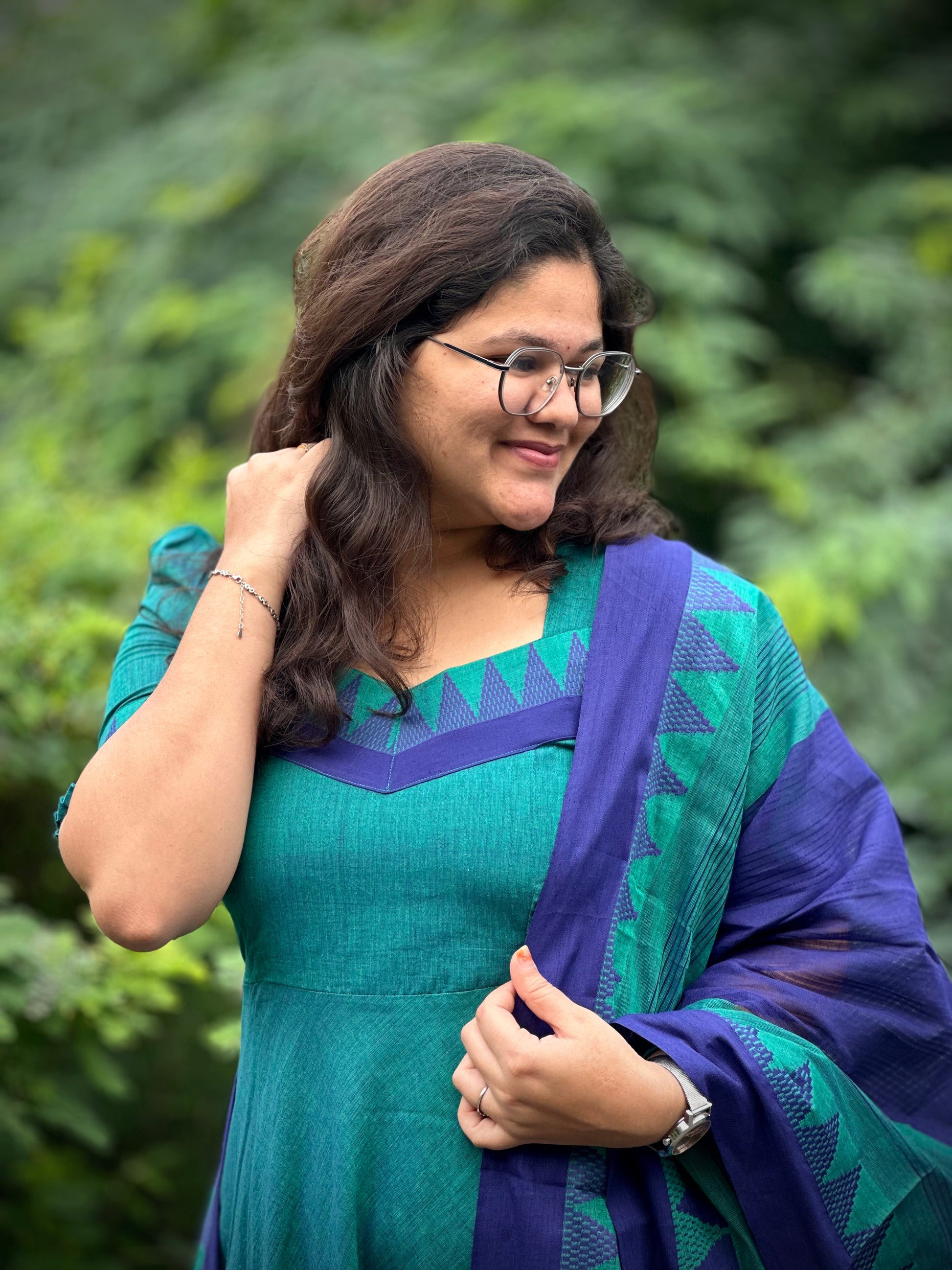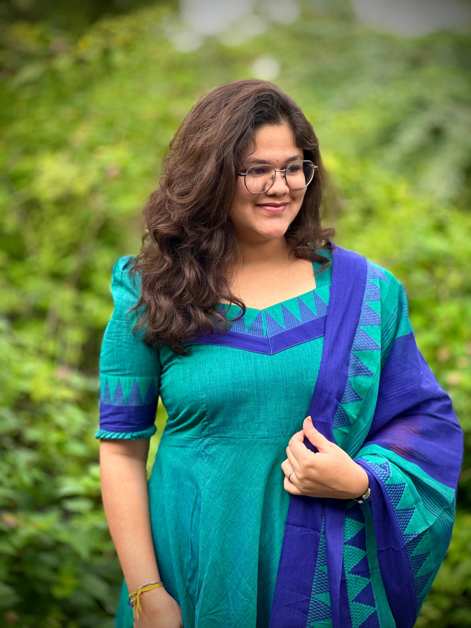 Style: Circular anarkali Kurthi / Star neck/ Elbow puff sleeve / Comes with cotton duppata as in picture