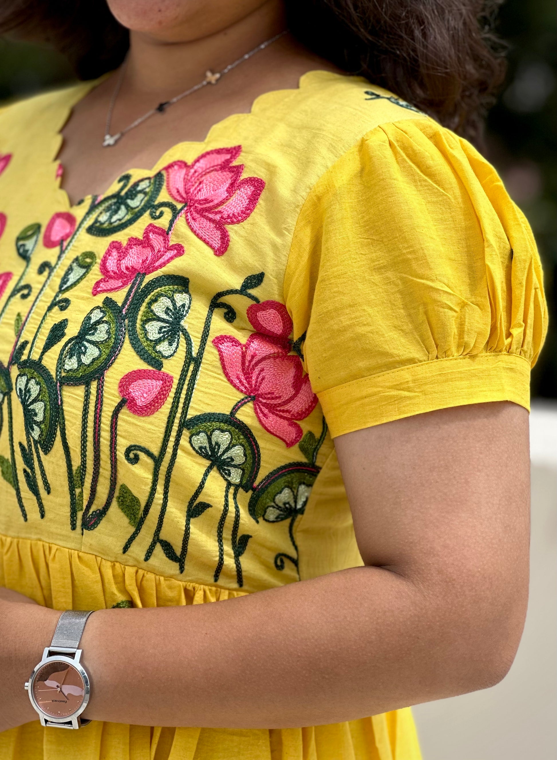 NECK N SLEEVE: V scallop neck and Short puff sleeves