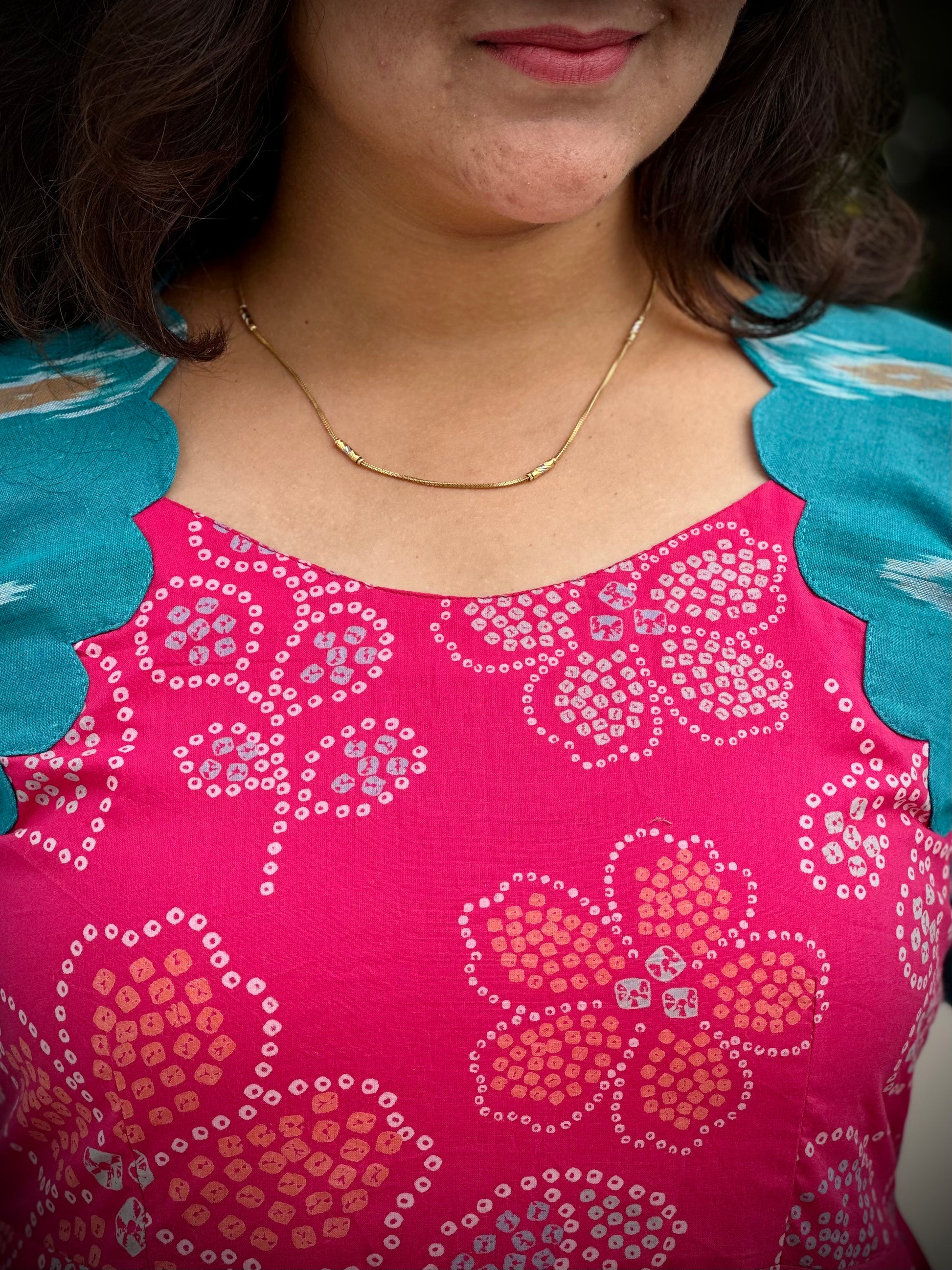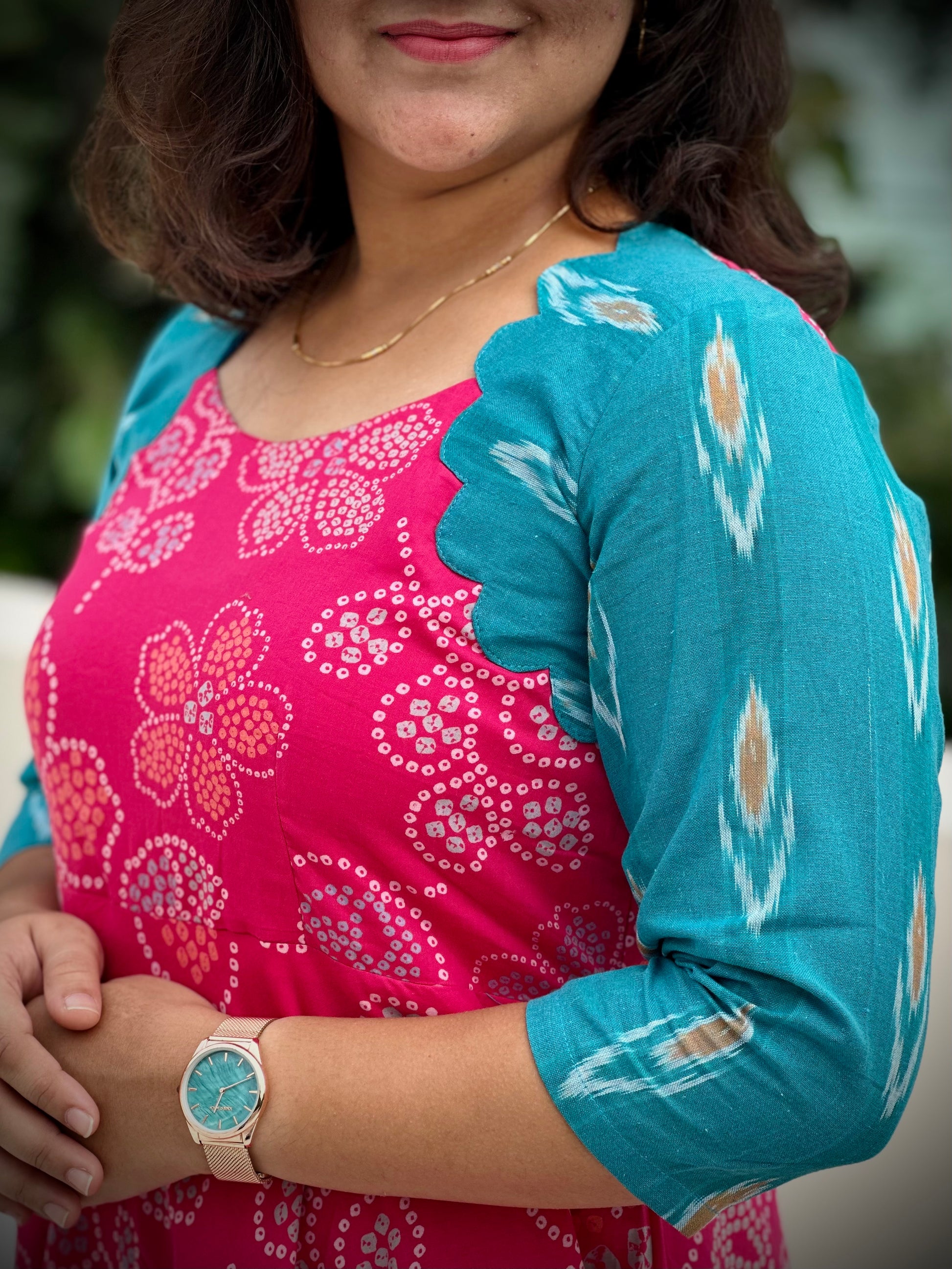 NECK N SLEEVE: Deep neck with scallop detailing and 3/4th sleeves